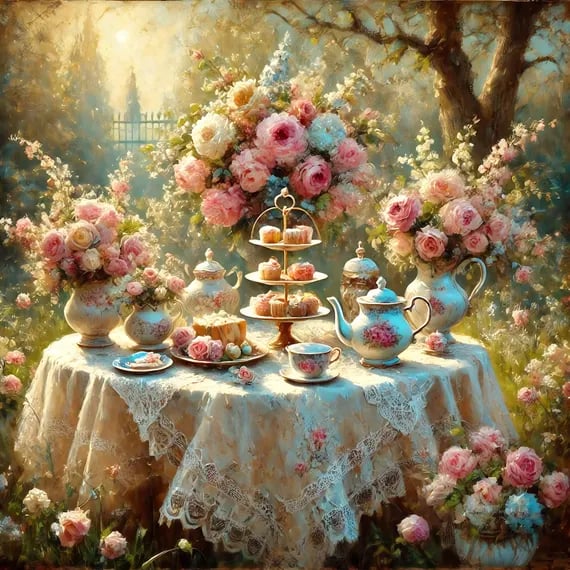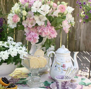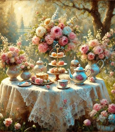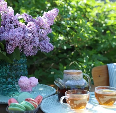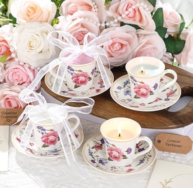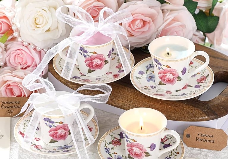 Hand-poured candles crafted in vintage teacups, inspired by English gardens and afternoon tea.